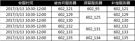 为了良好的游戏体验,增加更多玩家之间交流和互动的机会,实现最激烈的战斗氛围。我们将于2017年3月13日10:30-12:00对部分服务器进行合区,在合区服务器内,多个服务器的玩家可以一起进行交流、战斗、互动,最激 情的战斗等待着你!