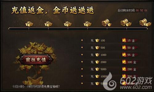 注:充值所赠送的金币,可累积领取(例:累计充值满5000金币,共可获赠500金币)