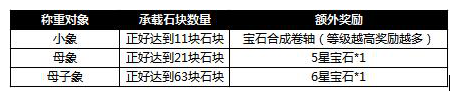 活动内容:活动期间,玩家通过给小象、母象或母子象称重来获得宝石或宝石合成卷轴奖励,且增加石块达到指定数量还可获得曹操赐予的额外奖励。