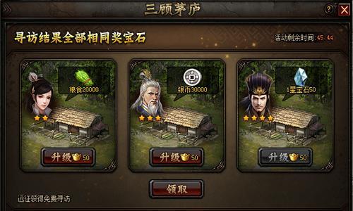 限时1天海量宝石真情大赠送,三顾茅庐(宝石版)活动全面上线;活动期间大家通过参与活动可赢取银币、粮食、宝石等缤纷奖励,完成全4星寻访还可额外获得大量宝石奖励!