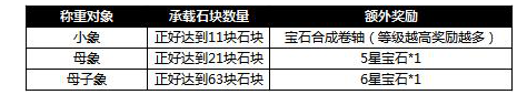 活动内容:活动期间,玩家通过给小象、母象或母子象称重来获得宝石或宝石合成卷轴奖励,且增加石块达到指定数量还可获得曹操赐予的额外奖励。