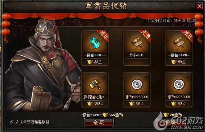 2、各位将军可花费少量元宝刷新军资种类,最高有几率刷出7级宝石!